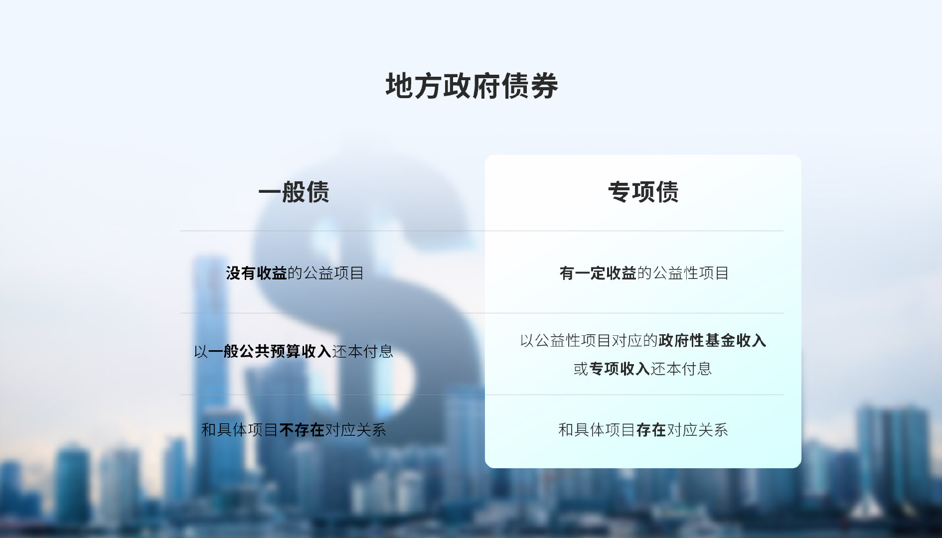 一般債運(yùn)用于沒(méi)有收益的公益性項(xiàng)目,是以一般公共預(yù)算收入還本付息的,和具體項(xiàng)目不存在對(duì)應(yīng)關(guān)系,也就是說(shuō),不需要具體問(wèn)題、具體分析;