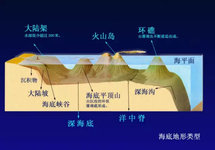 20世紀50年代初期,尤因(W.M.Ewing)等人利用剛出現的精密回聲測深儀進行連續水深探測,并繪制海底地形圖。1967年希曾(B.C.Heezen)和撒普(M.Tharp)在廣泛搜集詳細的連續回聲測深資料和圖件的基礎上,編繪出世界海底地形圖,揭示出海底的地貌形態有:大陸架、大陸斜坡、深海平原、海溝、洋脊等,還有洋脊脊峰處的裂谷和同洋脊橫交的斷裂帶等。其中,作為全球系統的洋脊及其上的裂谷和橫大斷裂帶的發現,對于當代地球科學的發展具有重要意義。