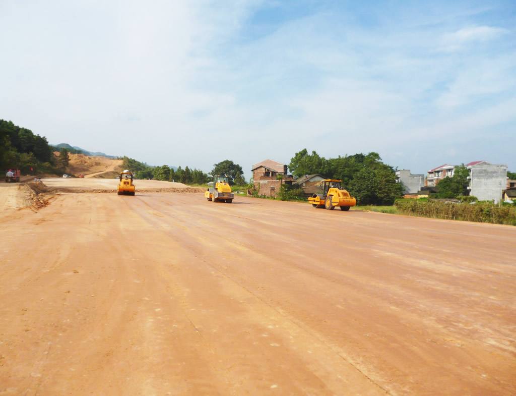 6、路基碾壓。其方法是:第一遍用震動壓路機(jī)靜壓進(jìn)行穩(wěn)壓,然后再震動壓實(shí)。