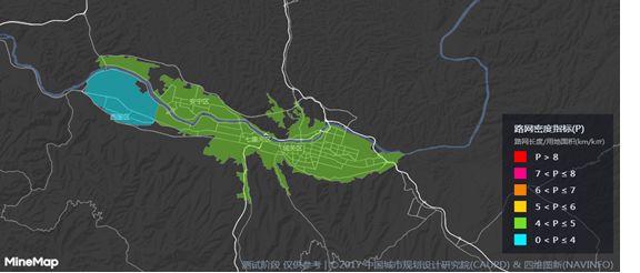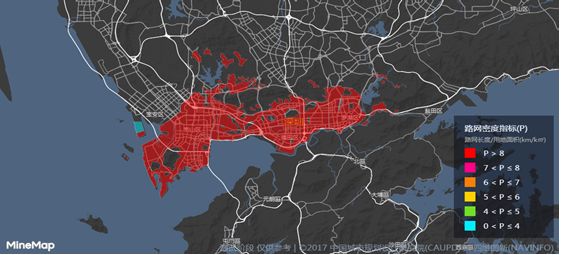 依托大數(shù)據(jù)平臺(tái)Minedata,中規(guī)院聯(lián)合四維圖新打造了一個(gè)以路網(wǎng)為基礎(chǔ)的數(shù)據(jù)可視化平臺(tái),實(shí)現(xiàn)了城市道路網(wǎng)絡(luò)的動(dòng)態(tài)監(jiān)測,克服了傳統(tǒng)城市工作中道路網(wǎng)密度統(tǒng)計(jì)標(biāo)準(zhǔn)不統(tǒng)一、數(shù)據(jù)更新時(shí)效性差等問題,為合理控制城市道路網(wǎng)密度、促進(jìn)城市交通規(guī)劃的落實(shí)提供了有效支持。