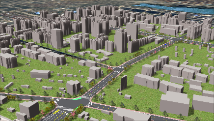 然后,通過3DRoad自動生成三維道路,批量加載道路附屬設施,自動拉伸三維建筑或者加載三維建筑的BIM、3dmax等模型,集成三維場景;
