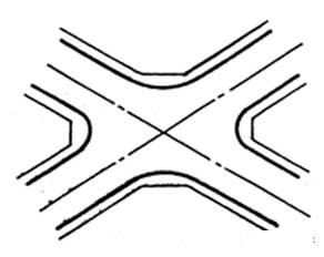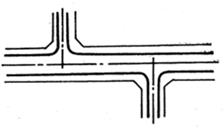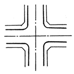 兩條道路垂直或近似垂直相交;其形式簡(jiǎn)單,交通組織方便,街角建筑易于處理,適用范圍廣,是最基本的交叉口形式。