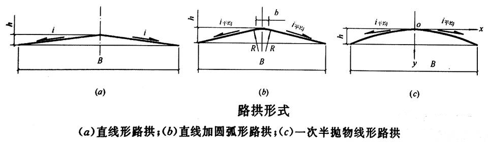 道路在橫向上單位長(zhǎng)度內(nèi)升高或降低的值,稱為路拱坡度(i),通常用%、‰或小數(shù)值表示 。