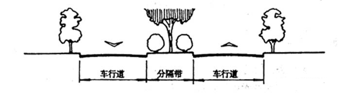 利用分隔帶隔離對(duì)向車流,將車道一分為二的橫斷面形式。