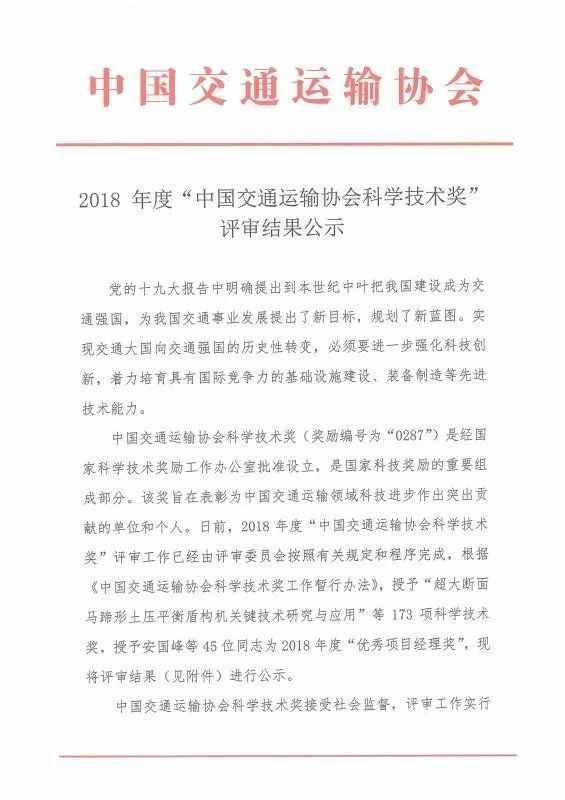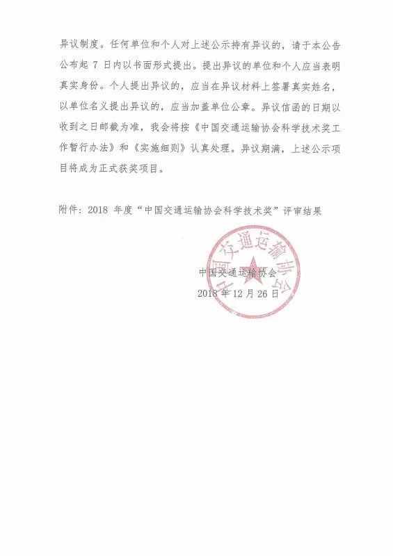 2018年度“中國交通運輸協(xié)會科學(xué)技術(shù)獎”評審結(jié)果公示