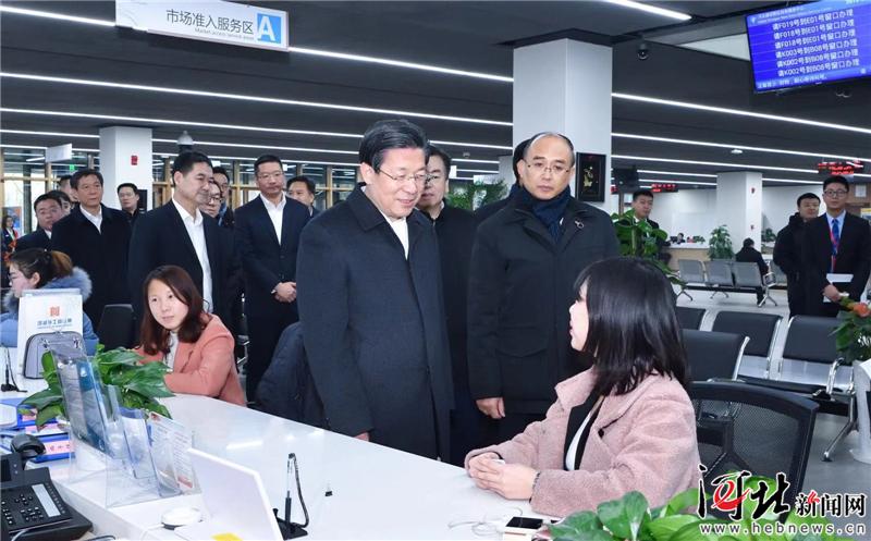 1月3日,全省雄安新區建設發展工作會議在雄安新區召開。會后,王東峰、許勤等到雄安市民服務中心,考察了政務服務中心和規劃展示中心。 記者趙威攝
