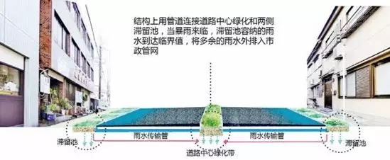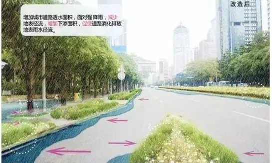 道路中心綠化作為常見的道路綠化形式,在海綿城市建設上有很大的潛在利用價值。道路兩側的滯留池和中心綠化在本來沒有聯系的情況下,結合道路橫坡的現狀,可整合為一個新的排水綠化生態系統,是一個可以用來應對道路積水的新策略。