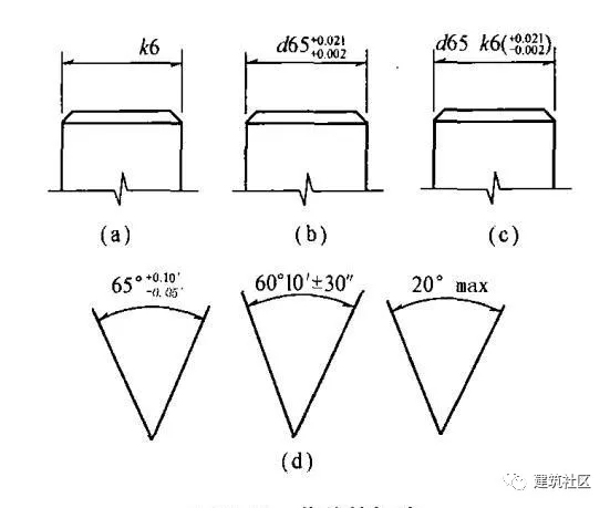5)角度公差的標(biāo)注同線性尺寸公差[圖2-63(d)]。