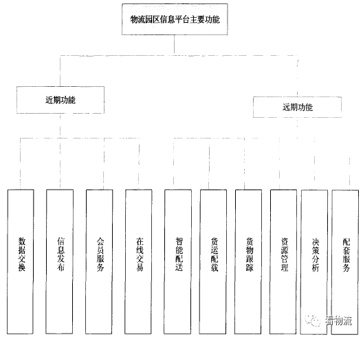 根據物流園區的作業、管理內容、運作需要等方面來看,物流園區信息平臺應具備以下的一些主要功能,如圖所示 按照分步實施,循序漸進的原則,把其分為近期功能和遠期功能兩部分 先建設近期功能項目,再建設遠期功能項目這些項目涉及現代物流寬帶網絡系統、物流業務信息系統、現代物流園區內部管理信息服務系統及商務信息系統 .