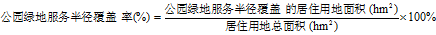 計算方法:公園綠地服務半徑覆蓋率=公園綠地服務半徑覆蓋的居住用地面積/居住用地總面積×100%