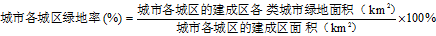 3、 建成區綠地率應按下式計算:
