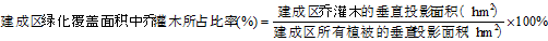 5、 建成區綠化覆蓋面積中喬、灌木所占比率應按下式計算: