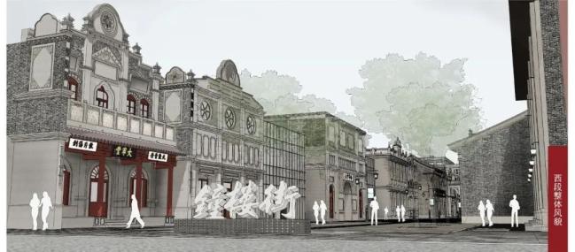 唱經樓周邊地段:唱經樓外側密植樹木,外側環繞建筑通過立面改造進行統一,形成“柳巷——鼓樓街——唱經樓”的空間序列與氛圍。