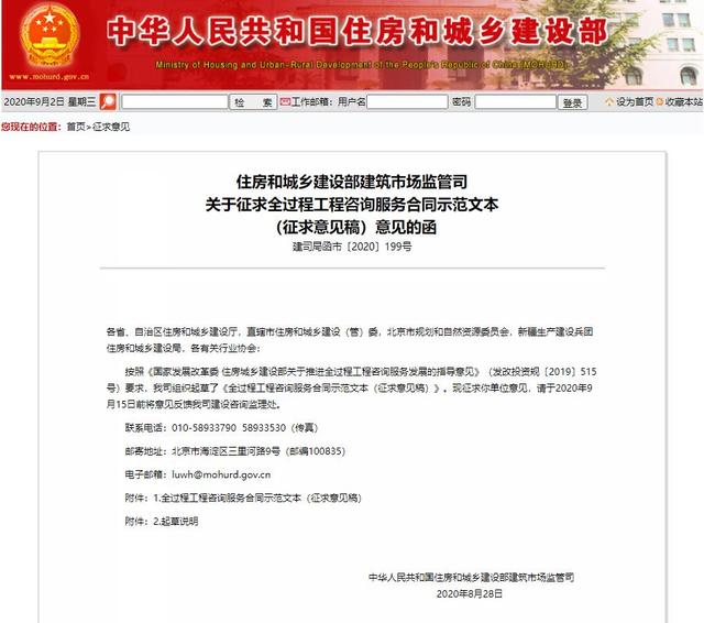 《全過程工程咨詢服務(wù)合同示范文本(征求意見稿)》出爐