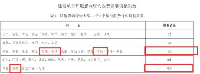 建設項目環(huán)境影響咨詢收費標準調整系數