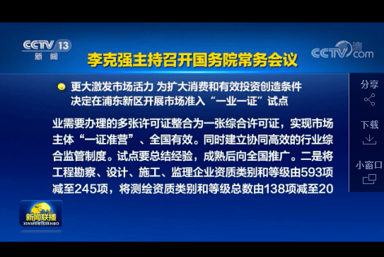 國務(wù)院總理李克強11月11日主持召開國務(wù)院常務(wù)會議,聽取國務(wù)院第七次大督查情況匯報,確保政策落實,更好發(fā)揮促進(jìn)經(jīng)濟(jì)穩(wěn)定恢復(fù)的重要作用;決定在浦東新區(qū)開展市場準(zhǔn)入“一業(yè)一證”試點,在全國大幅壓減建設(shè)工程企業(yè)和測繪資質(zhì)并加強監(jiān)管,更大激發(fā)市場活力,為擴大消費和有效投資創(chuàng)造條件。