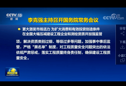 在全國大幅壓減建設(shè)工程企業(yè)和測繪資質(zhì)并加強監(jiān)管,更大激發(fā)市場活力,為擴大消費和有效投資創(chuàng)造條件。