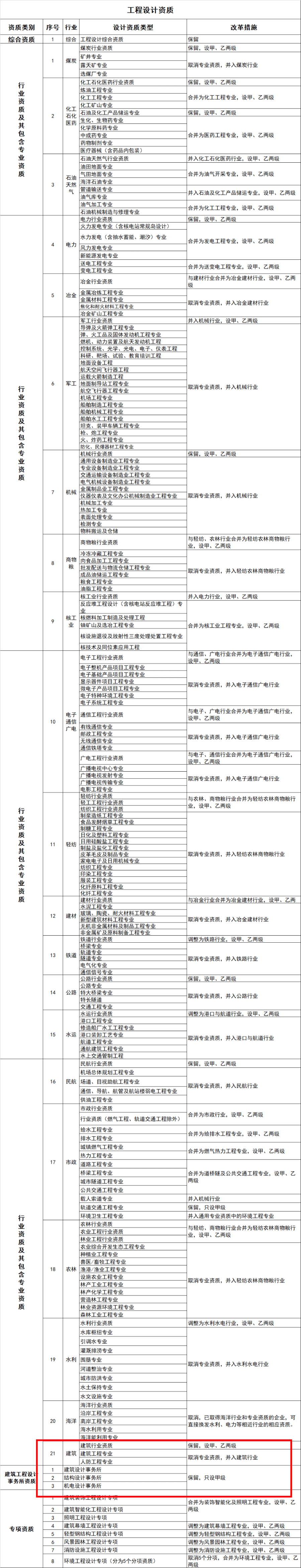 2、工程設(shè)計資質(zhì)。保留綜合資質(zhì)。對部分行業(yè)資質(zhì)進(jìn)行整合。