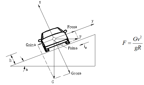 1、汽車在圓曲線路段行駛時會產生離心力F