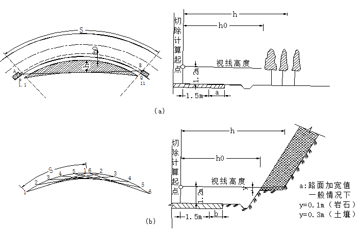 (2)縱斷面上的凸型豎曲線,見圖b