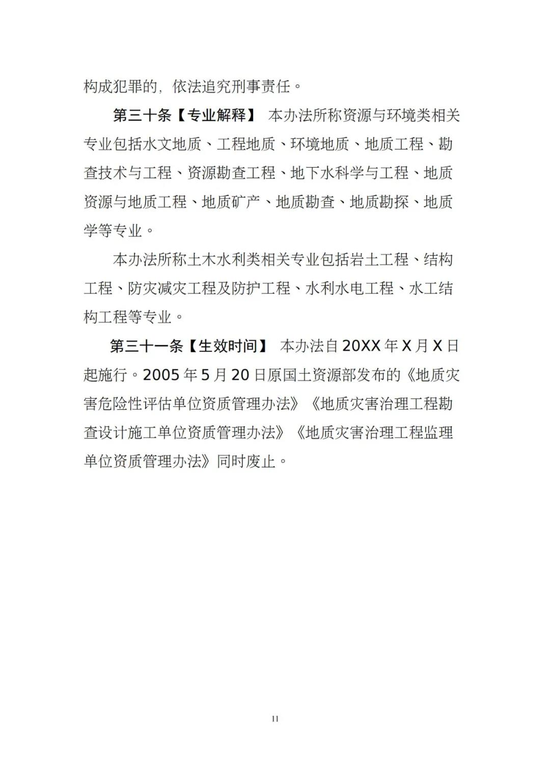 1.地質(zhì)災(zāi)害防治單位資質(zhì)管理辦法(征求意見稿)2.關(guān)于《地質(zhì)災(zāi)害防治單位資質(zhì)管理辦法(征求意見稿)》的起草說明