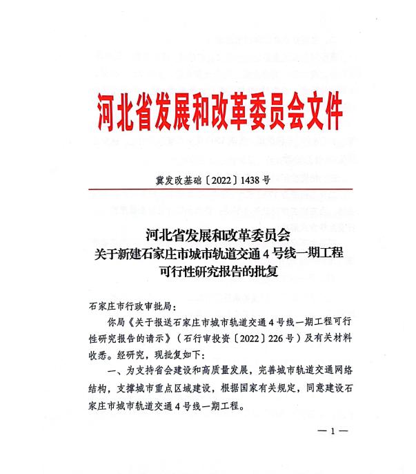 近日,石家莊市軌道交通4號線一期工程可行性研究報告獲河北省發改委批復。4號線一期工程可研的批復標志著石家莊軌道交通二期規劃建設取得了突破性進展。