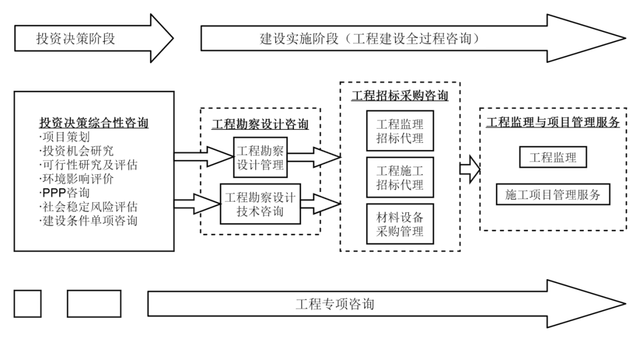 全過程工程咨詢(Construction Project Management,CPM)是指在土地收儲和規(guī)劃、項目可行性研究和設(shè)計階段,以及后續(xù)的投資決策、招投標、施工、竣工驗收、移交使用等各個階段,對工程項目的整個生命周期提供一站式的服務(wù)與管理。全過程工程咨詢可以幫助業(yè)主優(yōu)化投資、控制風(fēng)險、提高效率,實現(xiàn)工程質(zhì)量、安全、進度等方面的目標,同時也可以促進行業(yè)健康發(fā)展、提升工程建設(shè)行業(yè)的水平和能力。國家推行全過程工程咨詢的主要目的是為了提高建設(shè)項目的質(zhì)量和效益,降低工程風(fēng)險和投資風(fēng)險。通過引入專業(yè)的第三方咨詢機構(gòu),從項目立項、規(guī)劃設(shè)計、招投標、施工監(jiān)理、驗收等各個環(huán)節(jié)對建設(shè)項目進行全過程跟蹤和管理,以保證工程質(zhì)量和安全,并在控制投資成本和推進工期方面發(fā)揮積極作用。此外,全過程工程咨詢還有助于促進行業(yè)標準化、規(guī)范化和信息共享,提升整個建筑工程領(lǐng)域的發(fā)展水平和國際競爭力。