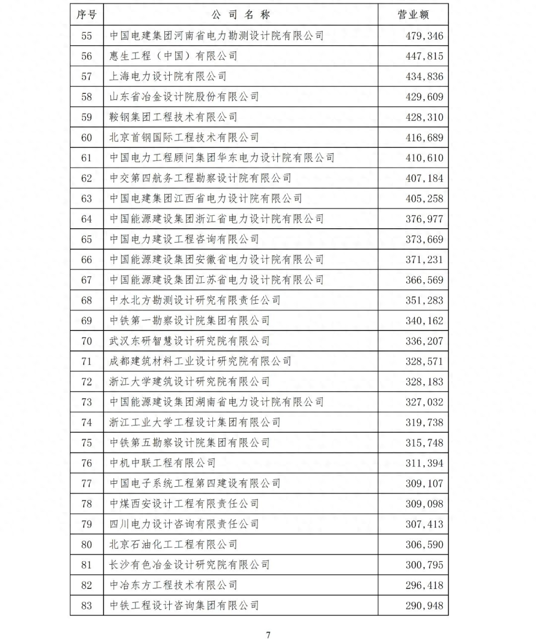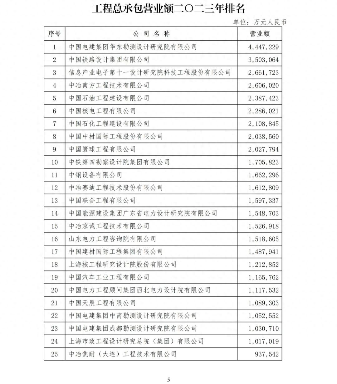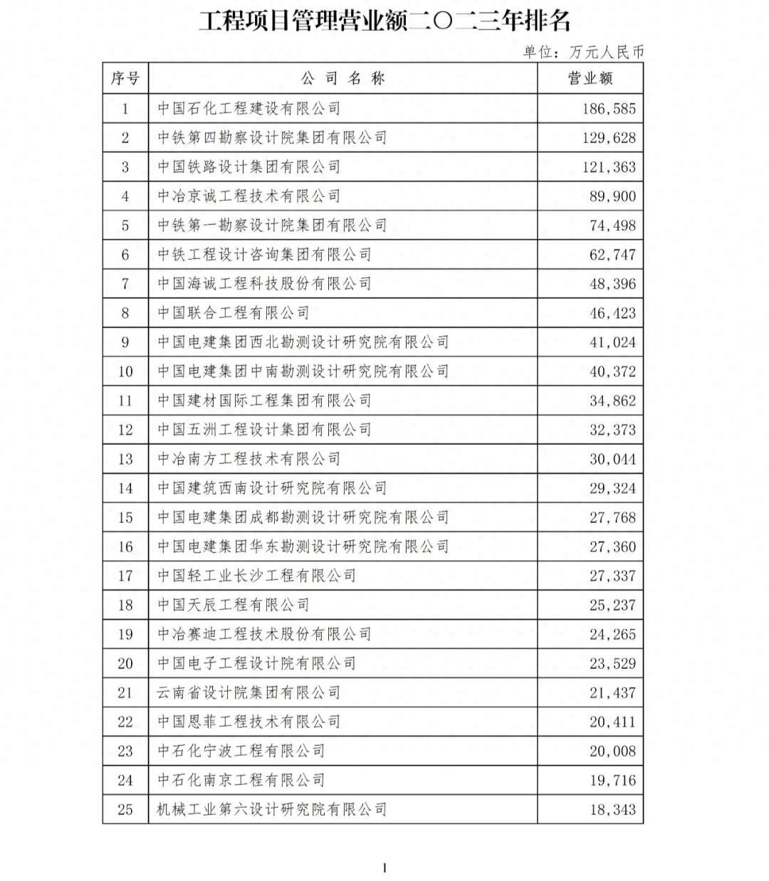 關于公布勘察設計企業工程項目管理和工程總承包營業額二〇二三年排名的通知