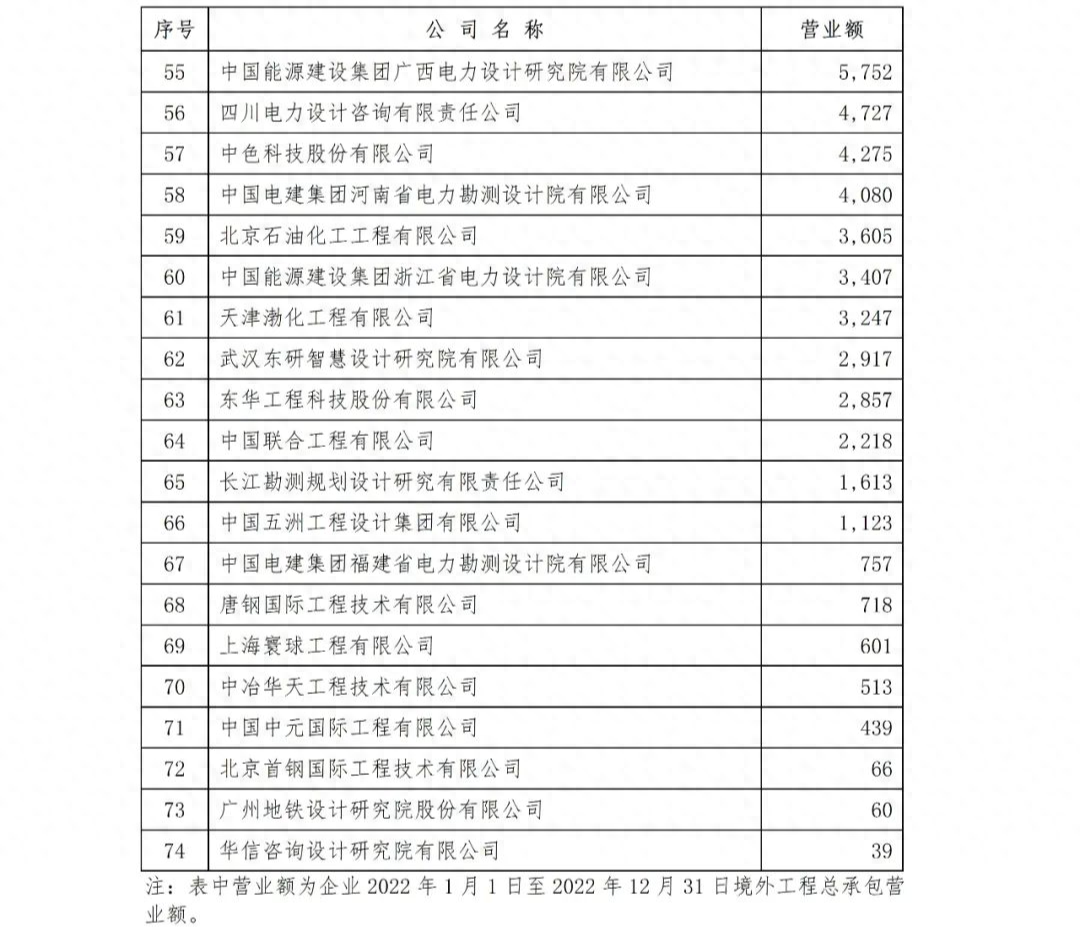 近日,中國勘察設計協會公布了勘察設計企業工程項目管理和工程總承包營業額2023年排名,其中,工程項目管理營業額排名92家企業上榜,中國石化工程建設有限公司以186,585萬元人民幣營業額位居榜首;工程總承包營業額排名186家企業上榜,中國電建集團華東勘測設計研究院有限公司以4,447,229萬元人民幣營業額位居榜首;境外工程項目管理營業額排名42家企業上榜,中國鐵路設計集團有限公司以37,515萬元人民幣營業額位居榜首;境外工程總承包營業額排名74家企業上榜,中國石油工程建設有限公司以1,315,651萬元人民幣營業額位居榜首。