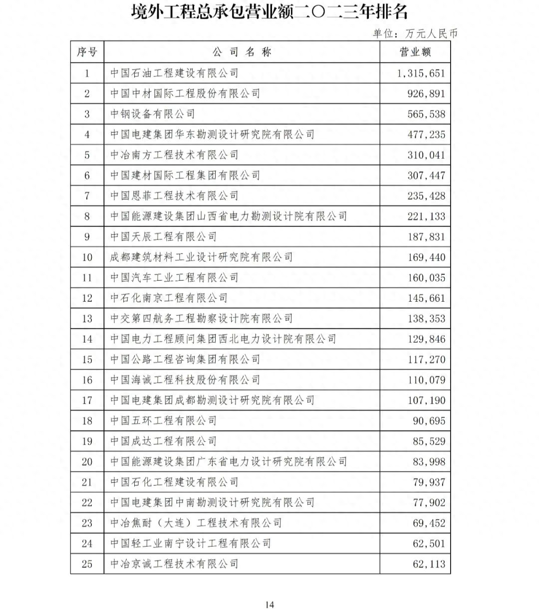 按照《關于2023年開展勘察設計企業工程項目管理和工程總承包營業額排名活動的通知》(中設協字〔2023〕13號)要求,中國勘察設計協會建設項目管理和工程總承包分會(以下簡稱總承包分會)在全國勘察設計行業組織開展了勘察設計企業工程項目管理和工程總承包營業額排名工作。