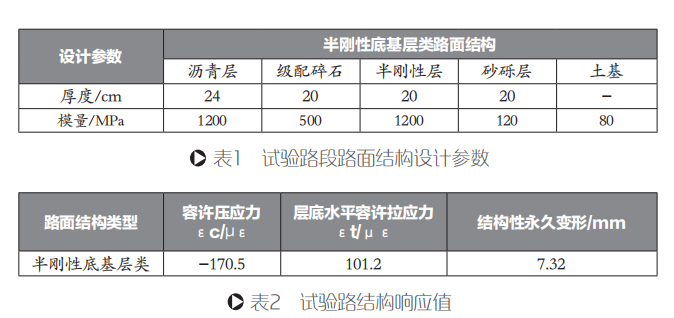某試驗(yàn)路為某高速公路中一段半幅路,所在區(qū)域地勢平坦、開闊,路線所經(jīng)區(qū)域?qū)僦袧駧Т箨懶詺夂颉H€長3km,起訖樁號為K23+100~K26+100,路面寬度為11.5m,路基寬度為13m,路基存在填挖現(xiàn)象,且有一定的縱坡。通過對半剛性組合式基層路面結(jié)構(gòu)、路面材料和施工質(zhì)量的設(shè)計來實(shí)現(xiàn)長壽命瀝青路面。