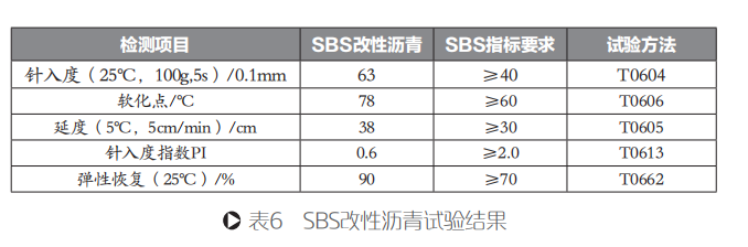 瀝青基層:瀝青基層采用改性瀝青混合料,膠結(jié)料采用SBS改性瀝青,礦料級配采用AC-25粗型級配,其SBS改性瀝青技術(shù)指標(biāo)如表6所示。