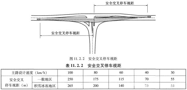 《細則》11.5.2條規定兩相鄰平面交叉的最小間距,包括設置加減速車道和交織車道,該規定值一般大于安全停車視距。