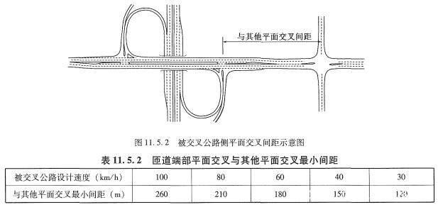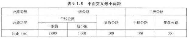 《標準》9.1.5條,針對不同功能定位、不同技術等級的公路平面交叉最小間距,應不小于表中規定值。