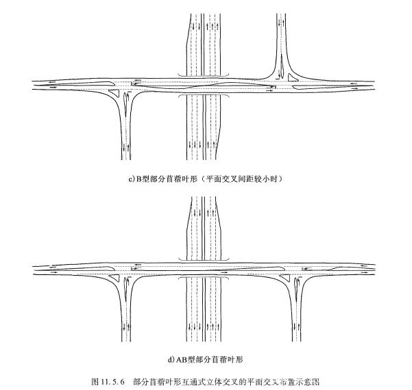 當平面交叉不滿足設計通行能力要求時,應調整互通形式或增加立體交叉匝道,減少交叉沖突交通量。
