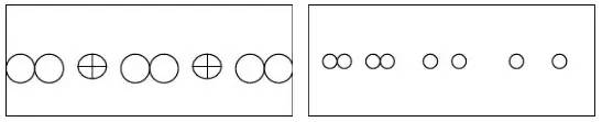 比如,盆花放置時(shí)利用變?nèi)~木和散尾葵兩種質(zhì)地、顏色、高度等完全不相近的盆栽間隔擺放,形成既有分割空間作用還不至于隔斷空間、增強(qiáng)通透性的效果,還能打破一種盆栽的單調(diào)、呆板的氛圍。圖2表示間隔韻律。左圖表示中間間隔另一種不同的植物,結(jié)合連續(xù)韻律表現(xiàn)。右圖表示同種植物間間隔不同的植物并且間隔距離漸變,形成間隔韻律,結(jié)合漸變韻律共同表現(xiàn)。