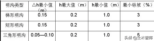 各種明溝夠深和縱坡度要求: