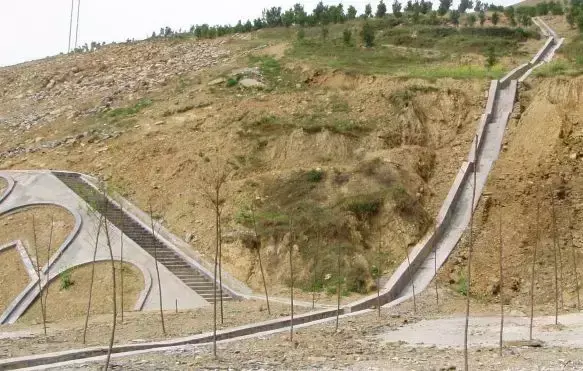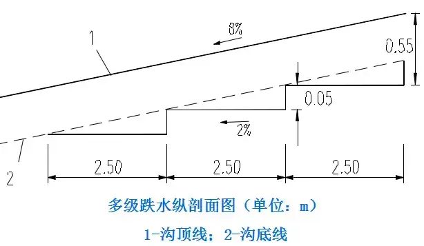 跌水構造:單級和多級之分,溝底有等寬與變寬之別。基本構造可分為進水口、消力池和出水口三個部分。
