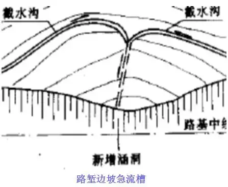 急流槽設置通常設置在高路堤邊坡、高路塹邊坡、路塹與高路堤連接處、回頭曲線上下邊溝等位置,是山區公路溝通上下線路路基排水及溝渠出水口的一種常見排水設施。