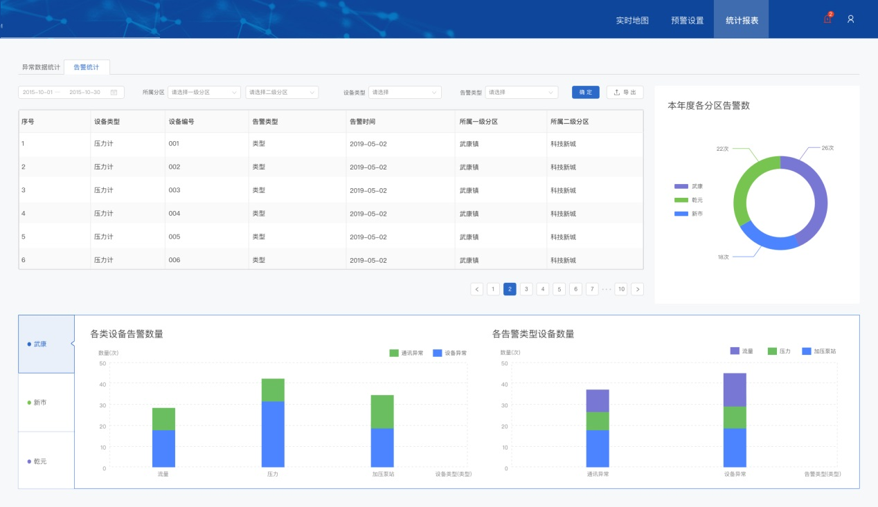 安裝物聯(lián)感知設(shè)備,對(duì)監(jiān)測(cè)點(diǎn)數(shù)據(jù)如壓力、流量、水質(zhì)等進(jìn)行實(shí)時(shí)采集、在線監(jiān)測(cè)。實(shí)現(xiàn)生成監(jiān)測(cè)點(diǎn)歷史監(jiān)測(cè)數(shù)據(jù)相關(guān)報(bào)表、趨勢(shì)曲線等。