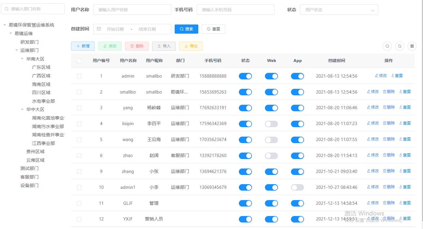 管理員可以通過(guò)用戶模塊管理各個(gè)部門(mén)的用戶,添加用戶角色,并設(shè)置權(quán)限和數(shù)據(jù)權(quán)限。還可進(jìn)行部門(mén)管理。
