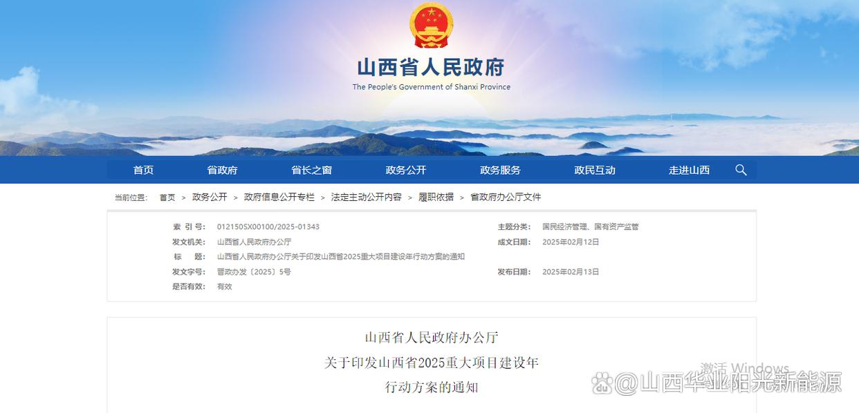 《山西省2025重大項目建設年行動方案》已經省委、省政府同意,現印發給你們,請認真貫徹執行。
