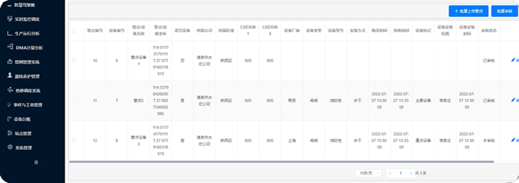 取水分析、消耗產出、水質分析、水壓分析、運營分析、設備統計